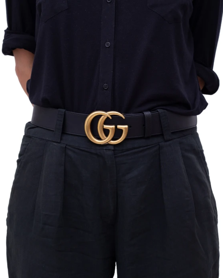 O cinto Gucci com a fivela GG é um clássico desde 1964. Disponível em diversas larguras e materiais, é uma peça essencial para elevar qualquer look.